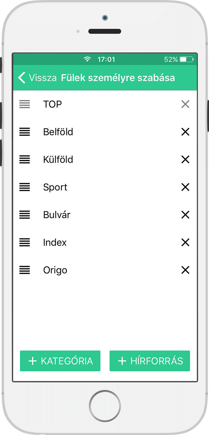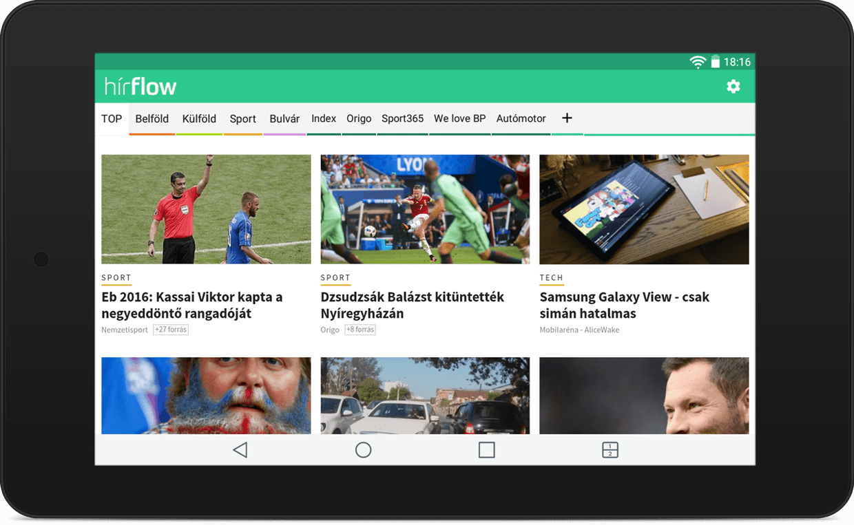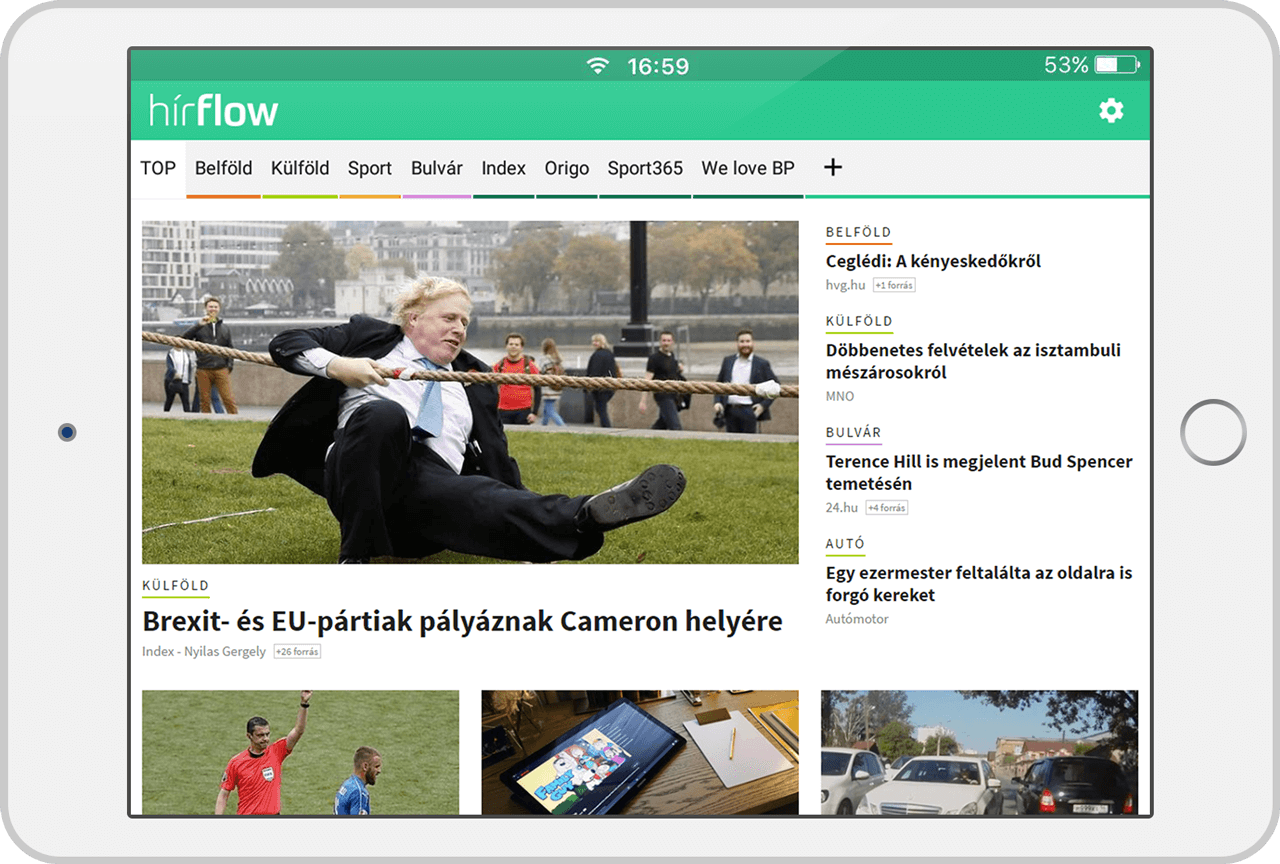 - A TOP hírfolyamba szedjük össze a legfontosabb híreket. A felhasználó választhatja ki, milyen témákból válogassunk (pl. Belföld, Külföld, Sport, stb.)