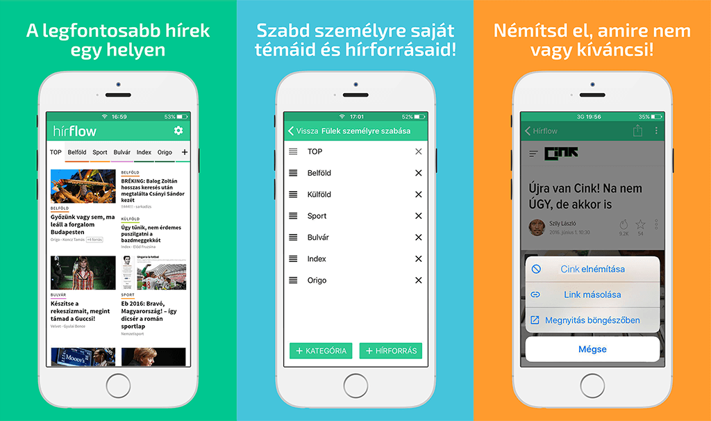 Célunk, hogy a felhasználók kezébe egy olyan alkalmazást adjunk, amely segítségével egy helyen lehet olvasni a legfontosabb híreket, egy sokszínű válogatásban, egy kényelmes, magazinos felületen. Nagy hangsúlyt fektettünk arra is, hogy lehetővé tegyük a felhasználók számára az app személyre szabását, ennek köszönhetően mindenki összeállíthatja saját Hírflow-ját!